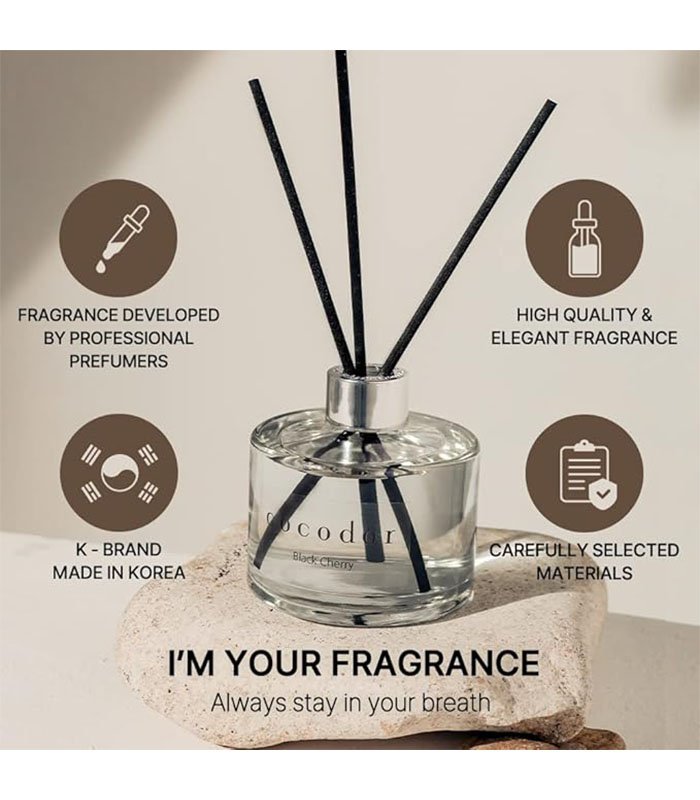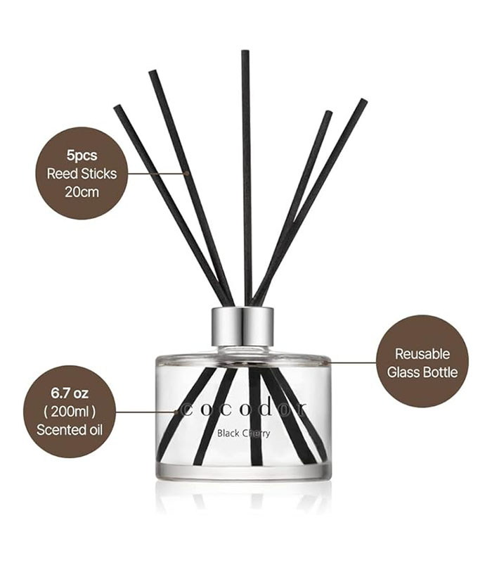 Contents: 200ml diffuser bottle + 5 black fiber sticks