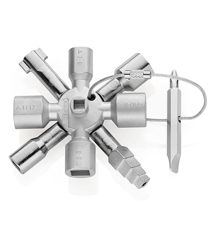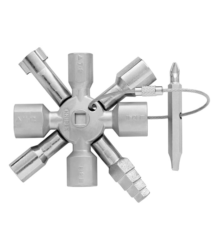 - Multifunctional key for the actuation of locking systems from the areas of facilities engineering (heating and plumbing, air conditioning, electrical technology), gas and water supply, and shut-off-systems