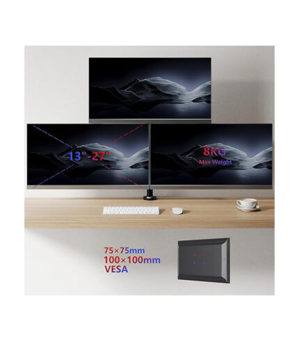 VESA Compatible – Supports VESA 75x75 & 100x100; up to 8kg per monitor.