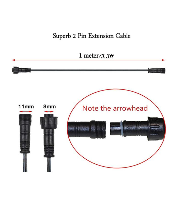 SMY 5-Pack 1M IP67 Waterproof 2-Pin Extension Cables for Deck Lights