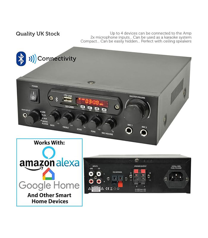 Complete Audio Kit: Includes 1x 110W Bluetooth HiFi Amplifier, 4x 80W Bookshelf Speakers, UK mains cable & manual